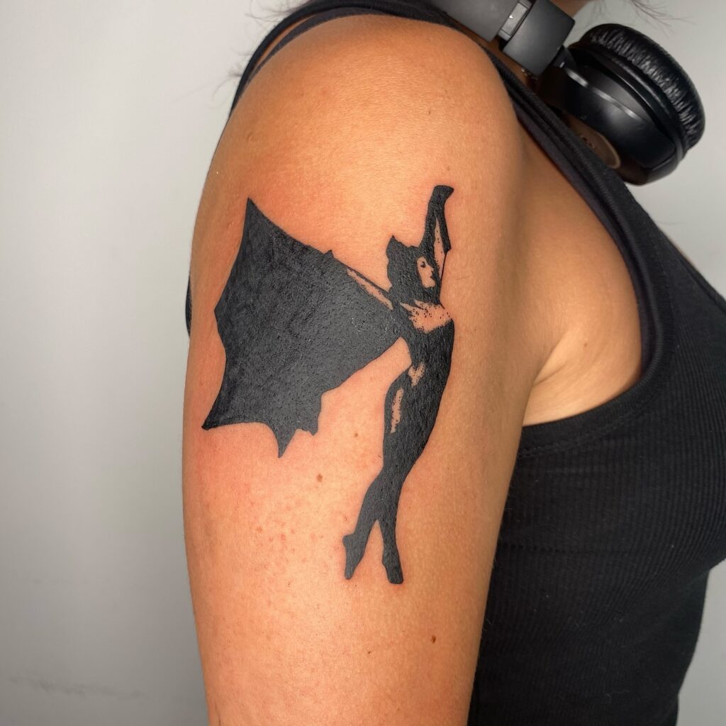 This tattoo captures the essence of gothic art—dark elegance, bold contrasts, and beauty found in unconventional, haunting forms.