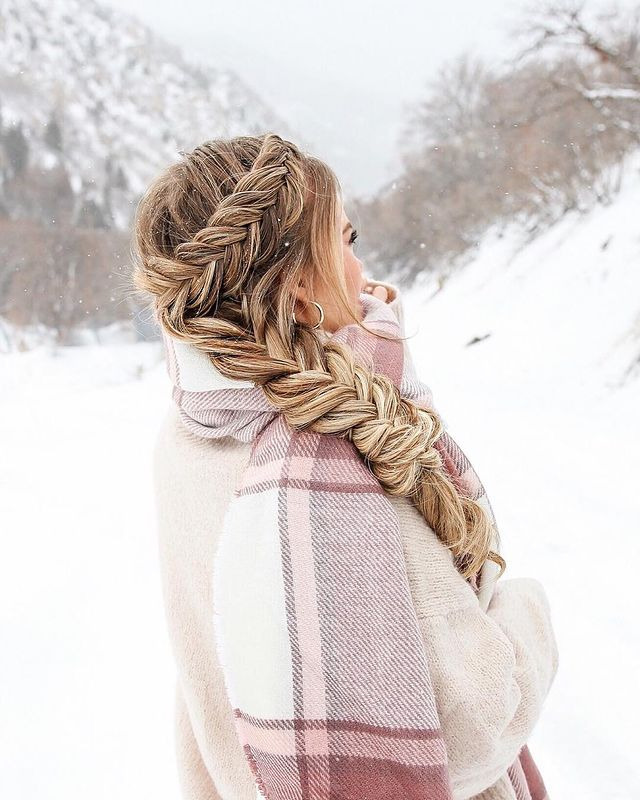 The Dutch fishtail braid is a stunning and practical hairstyle perfect for snowboarding. This braid starts with a Dutch braid technique that adds volume and complexity and moves into a fishtail braid for a unique and eye-catching look. This combination ensures your hair remains safe and stylish, making it perfect for a day on the slopes. The braid keeps your hair in place without tangling, and the sleek design adds a touch of sophistication to your snowboarding gear.