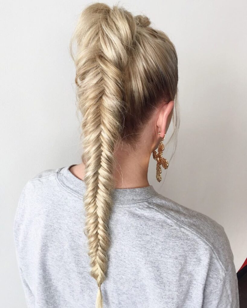 The fishtail is an updated version of the classic ponytail with an intricate braid, perfect for a sophisticated yet playful look at school. Section your hair into two sections and braid it into a fishtail braid and secure with an elastic band for an effortlessly chic look.