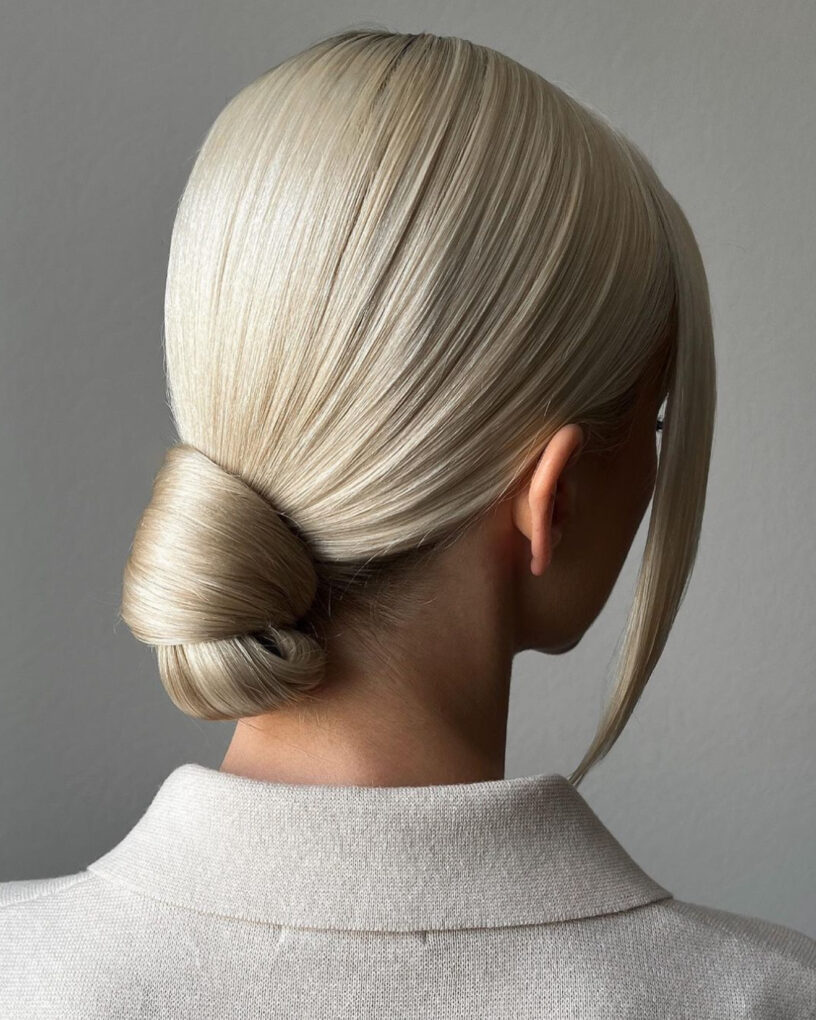 The sleek low bun exudes sophistication and simplicity, making it a timeless choice for back-to-school days. To achieve this elegant look, pull your hair back into a low bun at the nape of your neck and secure it neatly with a hair tie or bobby pins for an effortlessly chic look.