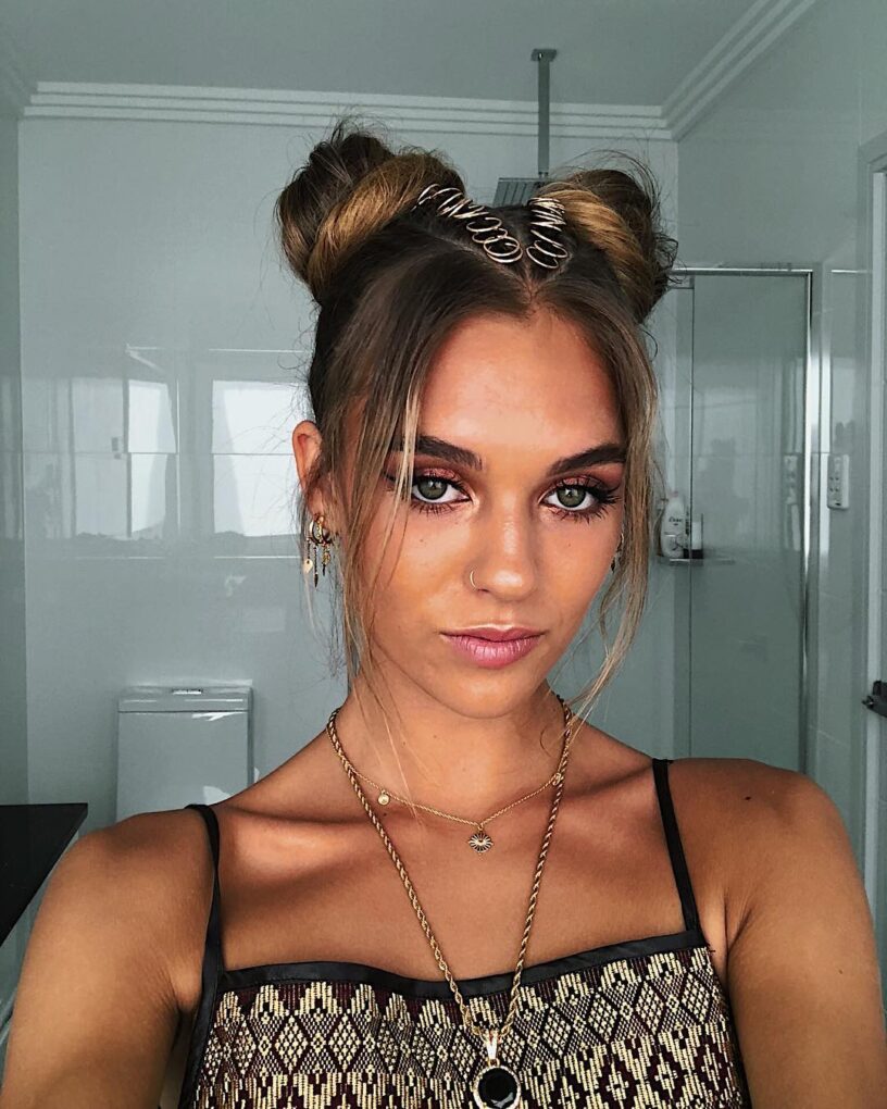 Space buns will add a playful and youthful touch to your back-to-school look. Divide your hair into two sections and twist each into a bun on each side of your head, securing with elastic bands or bobby pins for a cute and trendy hairstyle.