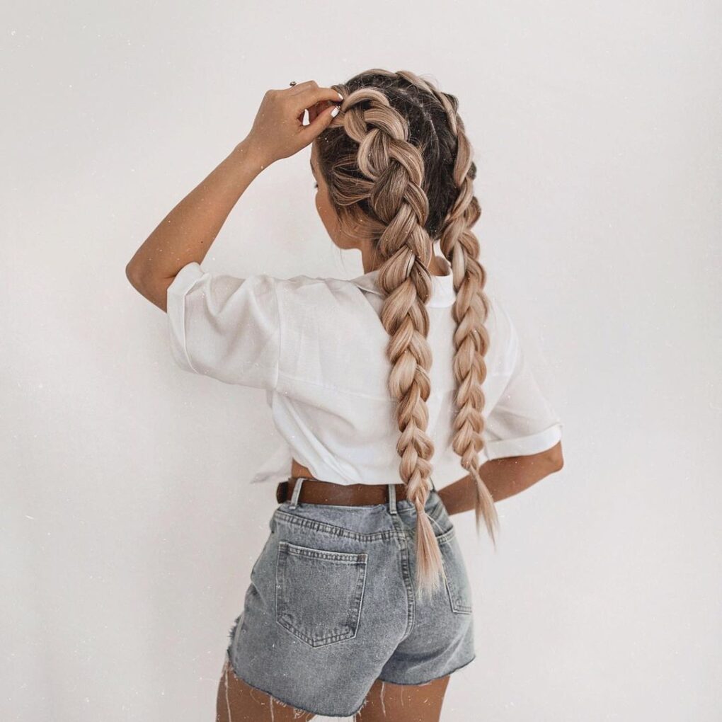 The Mermaid braid is a whimsical and intricate hairstyle that will add a touch of whimsy to your back to school look. Start by braiding small sections of hair and combining them into a large braid, creating a cascading effect reminiscent of mermaid waves for a magical and enchanting hairstyle.