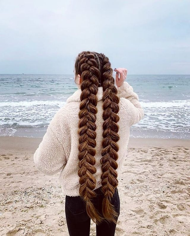 Double French braid ponytails are playful, symmetrical, attractive and functional. This look features two parallel French braids starting at the crown and flowing down, creating a balanced and structured look. This hairstyle is perfect for active days or casual outings, keeping hair in place and showing off the intricate braid. Double ponytails with French braids add a touch of sporty elegance to your look and are a great choice for a variety of occasions.