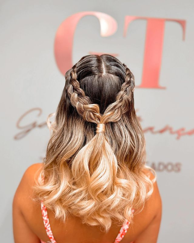 The half-up French braided double ponytail combines elegance, simplicity and romance. This hairstyle consists of two French braids starting at the temples and joining at the back to form a half-up ponytail, with the rest of the hair falling loosely in soft waves. This look is perfect for adding a subtle yet stylish element to your everyday look or for a special occasion, offering the perfect combination of structure and softness.