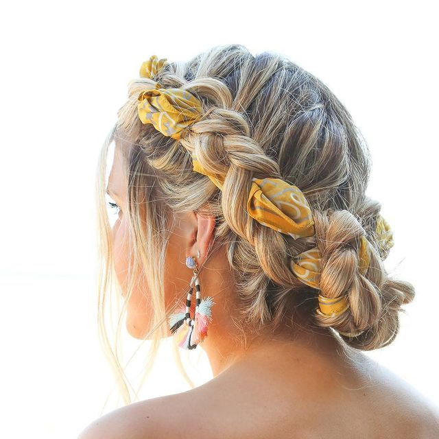 A French braid with a silk head scarf combines a classic braid with a bohemian twist. This hairstyle features a French braid intertwined with a delicate silk scarf to add color and texture. The braid starts at the crown and wraps around the head, creating a beautiful beach hairstyle. This look effortlessly combines elegance with a laid-back summer vibe and is perfect for outdoor adventures or a casual getaway.