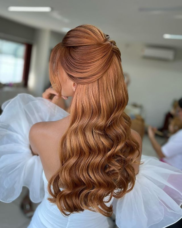 A huge half-up, half-down ponytail is a stunning hairstyle that combines volume and grace. By pulling the top part into a high ponytail and letting the rest of your hair flow freely, this look exudes boldness and glamor, making it perfect for standing out at any event.