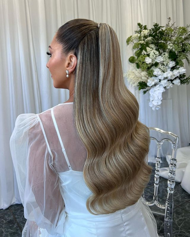 A semi-lifted ponytail with full volume at the crown creates a glamorous and dramatic effect. By backcombing the crown to add height and pulling the top part into a ponytail, this hairstyle creates a stunning silhouette that instantly adds elegance and grace to your look.