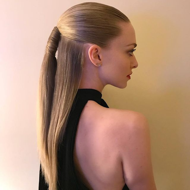 3. Sleek high ponytail with straight hair.