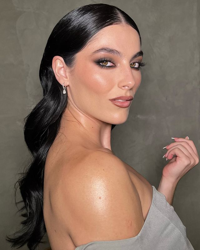 This dramatic hairstyle features straight hair styled in a sleek, wet look for a trendy and stylish look. The wet look creates a glossy, almost sculptural effect that enhances hair’s natural shine and texture. This style is perfect for making a big impression, perfect for special events or evening outs, combining modern sophistication with a touch of glamour.