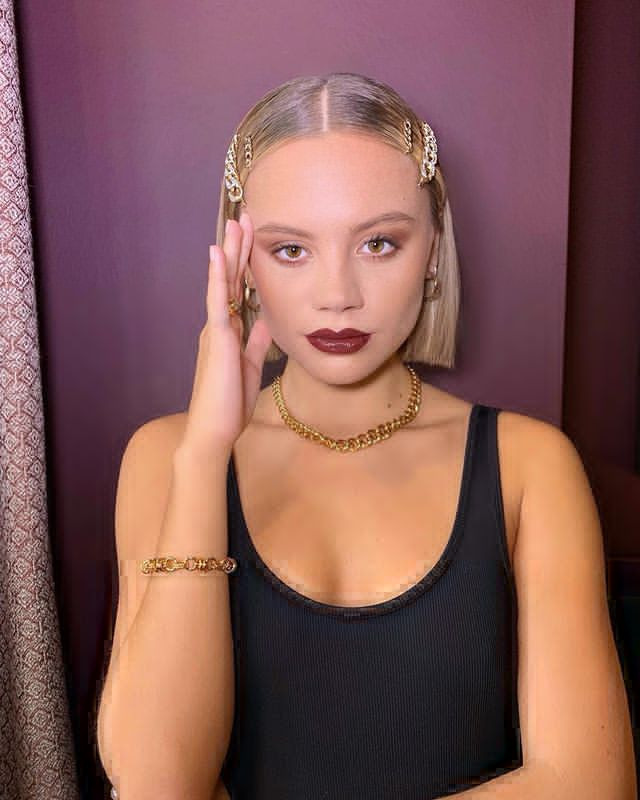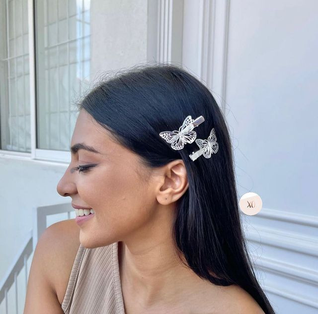 This modern hairstyle features sleek straight hair accessorized with metal clips to give it a trendy and stylish look. Straight hair creates a sleek and sophisticated base, while metal clips add glamor and edge to the look. This versatile style effortlessly combines elegance and modern fashion, perfect for any season and ideal for casual and formal occasions.