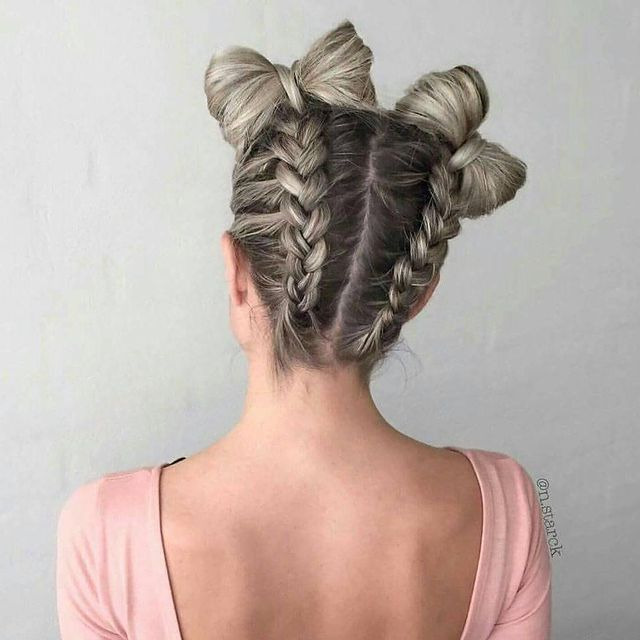 Playful space buns are a fun and trendy hairstyle in which the hair is parted into two sections and twisted or braided into buns at the top of the head. This look is perfect for giving your style a youthful and energetic vibe, making it a preferred choice for casual outings, festivals or any occasion where you want to stand out in a playful yet chic way.