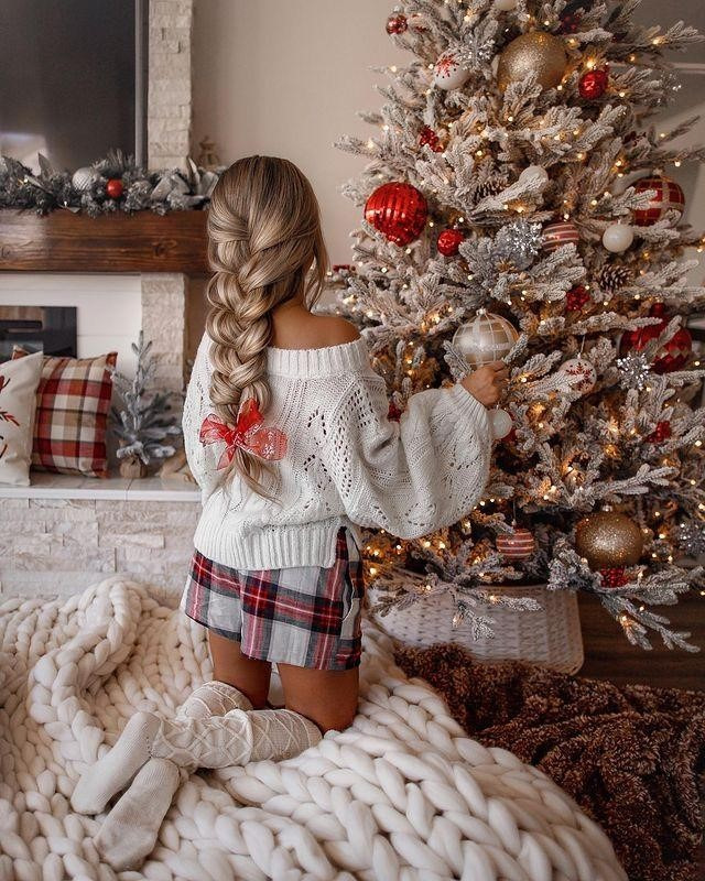 Form a bow out of your hair and turn a classic bun into a chic and festive hairstyle. This elegant bun with a bow is perfect for adding sophistication to your holiday look. Whether you’re attending a formal Christmas party or a cozy family dinner, this hairstyle combines creativity and class, offering a sophisticated look that stands out. Pair it with subtle accessories or an elegant outfit to complete the look.