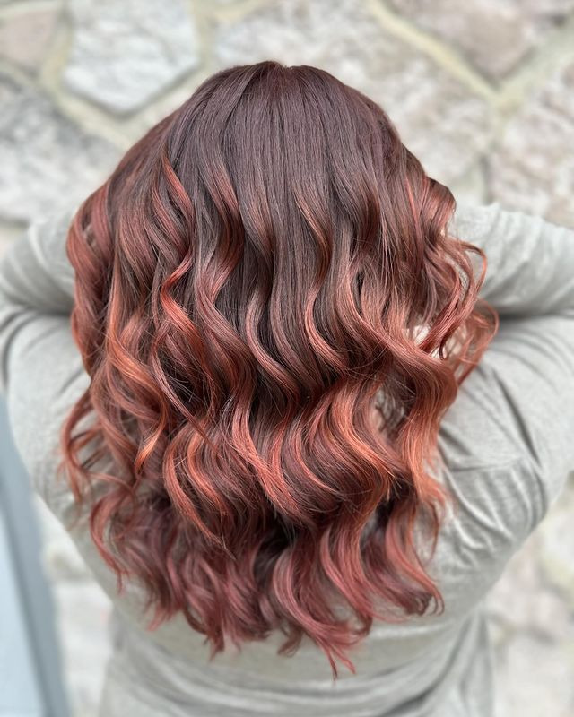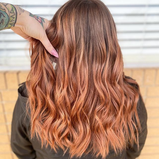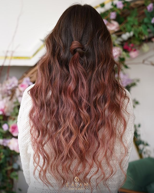 Copper Rose Ombre is a unique and elegant style that combines the warmth of copper with the softness of rose gold. This look goes from dark roots to rich copper tips with a subtle pink undertone. The seamless gradient adds depth and sophistication, ideal for those looking for a trendy yet sophisticated look. Copper Rose Ombre creates a warm, radiant look that highlights your hair with beautiful, blended tones.