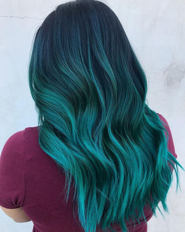 Turquoise ombre is a bold and vibrant style that will add a pop of color to your hair. This look transitions from dark roots to bright, vibrant turquoise tips, creating a vibrant and smooth gradient. Perfect for those who want to make a statement, turquoise ombre adds a touch of exoticism and adds vibrant, ocean-inspired hues to your hair.