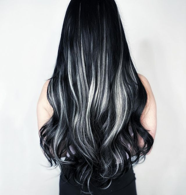 Black to gray ombre is a vibrant and modern choice that creates stunning contrast. This style starts with deep jet-black roots that fade into incredible silver-gray tips. The dramatic gradient adds depth and sophistication, creating a sleek and edgy look. From jet black to gray, ombre is perfect for those looking for a bold and modern look. It exudes elegance and mystery, making it a standout style that attracts attention and makes a powerful statement.