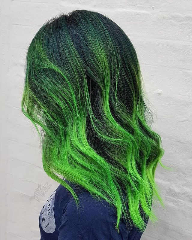 Neon green ombre is a bold and exciting choice for those who want to make a statement. This style transitions from dark roots to bright neon green tips for a vibrant, high-contrast look. Neon green ombre is perfect for those who want to create a bold and adventurous style. It gives a vibrant color that makes your hair stand out and attract attention.