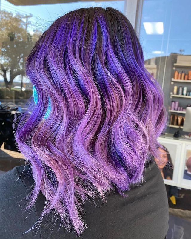 Galaxy ombre is a bold and charming style that will bring a cosmic vibe to your hair. This look transitions from dark roots to a mesmerizing mix of purples, blues, and pinks that mimic the colors of the galaxy. Ideal for those looking for a vibrant and eye-catching look, galaxy ombre will add a touch of cosmic wonder to your style with its vibrant and otherworldly hues.
