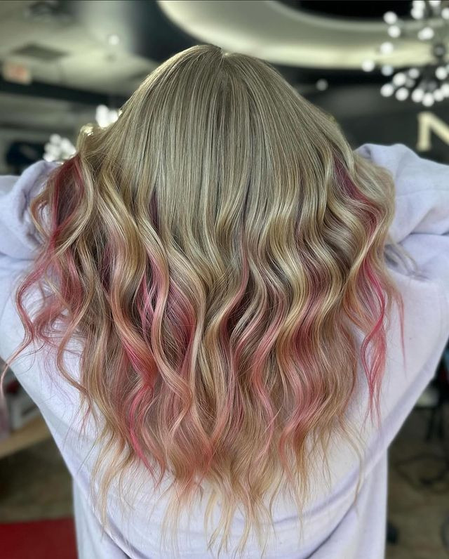 A blush ombre is a soft and romantic choice that will add a touch of elegance to your hair. This style transitions from darker roots to soft pink tips, creating a subtle and smooth gradient. Ombre blush is ideal for those who want a subtle yet dramatic look. They give a fresh and feminine look, highlighting your hair with light pink tones.