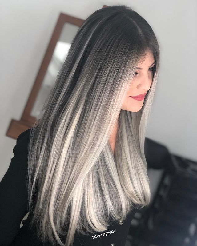 Graphite ombre is an elegant and modern choice that will add a touch of sophistication to your hair. This style transitions from dark roots to cool graphite gray tips, creating a smooth and sophisticated gradient. Graphite ombre highlights your hair with sleek metallic tones, creating a modern and sophisticated look, perfect for those looking for a stylish and edgy look.