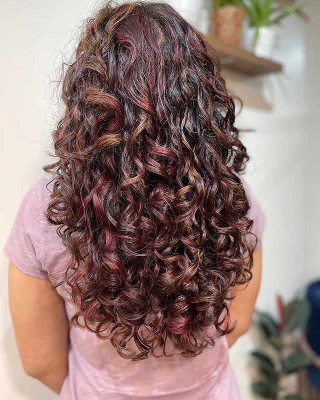 Волосы с завитками шоколадного и ванильного цвета сочетают насыщенные брюнетные тона со сливочными светлыми бликами, создавая восхитительно объемный образ. Контраст между глубокой шоколадной основой и легкими маслянистыми полосками создает поразительный, но мягкий баланс. Эта комбинация придает волосам глубину, яркость и подвижность, делая их динамичными и текстурными. Это приятный, утонченный стиль, идеально подходящий для тех, кто любит высококонтрастные, но плавные сочетания цветов.