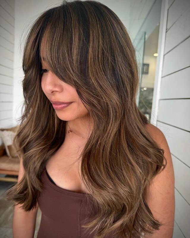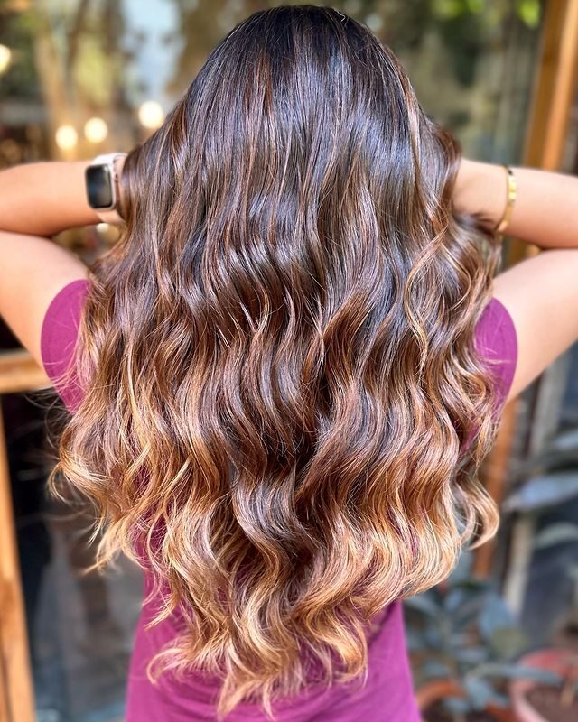 Шоколадно-карамельный балаяж придаст вашим волосам тепло и богатство благодаря сочетанию темно-коричневых и золотисто-карамельных тонов. Шоколадная основа придает глубину, а карамельные блики добавляют яркости и сияния, создавая восхитительный эффект загара. Эта комбинация добавляет объема и движения, делая ваши волосы более густыми и динамичными. Это непринужденно шикарный образ с идеальным балансом теплых и прохладных тонов, который подойдет практически к любому цвету лица. Если вы ищете богатый стиль, не требующий особого ухода, вам подойдет шоколадно-карамельный балаяж.