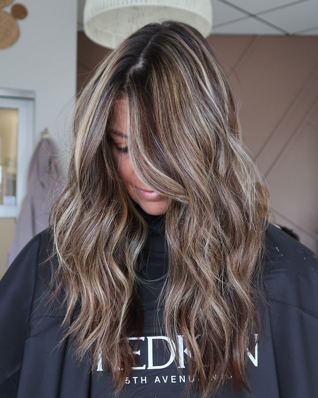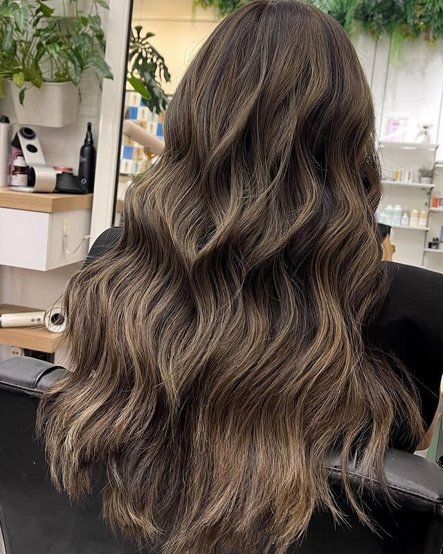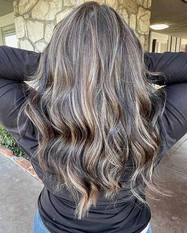 Прохладные пепельно-коричневые блики придадут вашим волосам современный дымчатый оттенок. Пепельные тона добавляют мягкую яркость, сохраняя при этом образ шикарным и сдержанным. Гармонично интегрируясь с более насыщенными оттенками и плавно сочетаясь с более темными оттенками, эти блики создают глубину и объемность без резкого контраста. Этот полированный, не требующий особого ухода стиль легко выглядит и идеально подходит для освежения вашего цвета, придавая ему изысканный, естественный вид.
