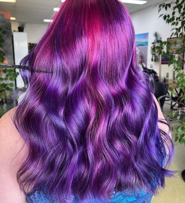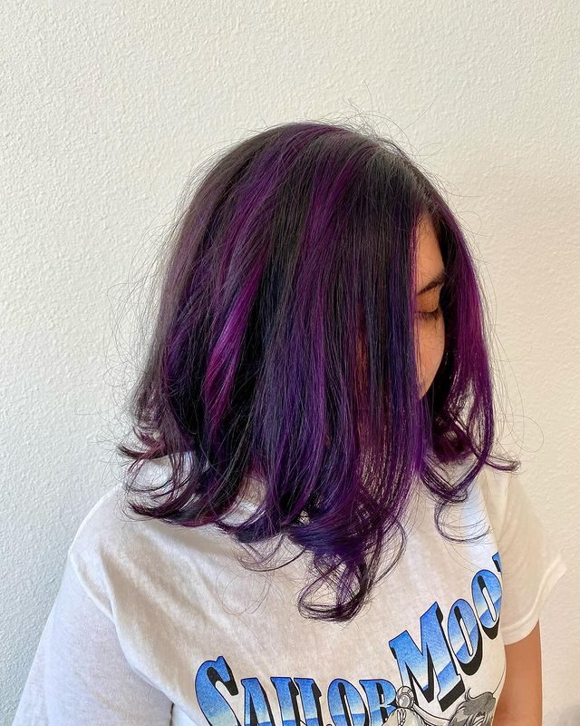 Фиолетовые блики придают вашим волосам смелый электрический оттенок благодаря своему насыщенному оттенку драгоценных камней. Глубоко-фиолетовые пряди прекрасно отражают свет, создавая поразительный контраст с более темной основой или добавляя глубины более светлым тонам. Фиолетовые блики идеально подходят для тех, кто хочет выделиться. Они привнесут веселье и креативность в ваш стиль, сохраняя при этом его остроту и шик. Это потрясающий образ, одновременно смелый и элегантный.