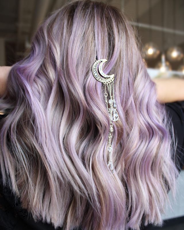 Серебряно-сиреневые блики идеально сочетают непринужденную изысканность и мягкую пастельную красоту. Серебристые тона придают изящество и современность, а оттенки сирени привносят игривый, мечтательный оттенок. Вместе они создают тонкое мерцание, которое красиво отражает свет, придавая вашим волосам многомерный, неземной вид. Серебристо-сиреневые блики идеально подходят для тех, кто хочет выделиться мягким, уникальным цветом, свежим и элегантным.