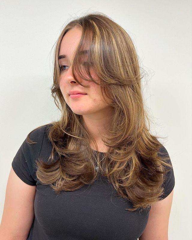 Нежные пепельно-русые детские светильники создают естественный загорелый вид с прохладным, утонченным оттенком. Изысканные, нежные блики мягко вплетаются в волосы, добавляя необходимое количество легкости без резкого контраста. Прохладные пепельные тона органично сочетаются с более темной базой, создавая мягкий дымчатый оттенок, который выглядит непринужденно и естественно. Эта прическа улучшает текстуру и подвижность волос, делая их более густыми и сияющими.