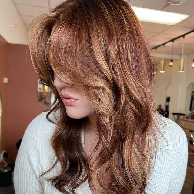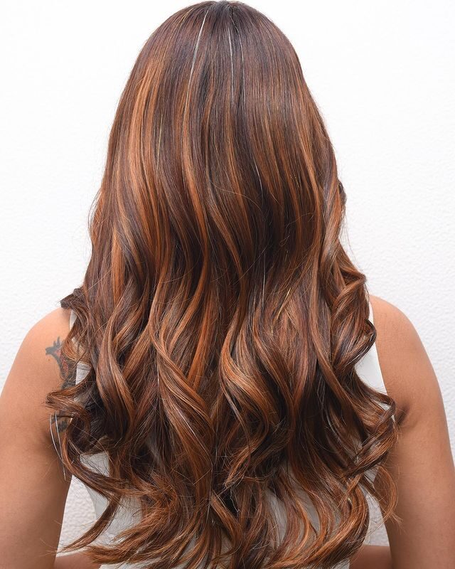 Медный балаяж придает вашим волосам огненное тепло и глубину, сочетая насыщенные медные тона с цельным, естественным послевкусием. Нарисованные вручную блики создают мягкий градиент, который красиво переходит от темных корней к сияющим, полированным кончикам. Это идеальный способ добавить яркости и объема, не требуя при этом особого ухода. Медный балаяж выглядит смелым и сияющим, придавая вашим волосам солнечный свет, который выделяется без особых усилий.