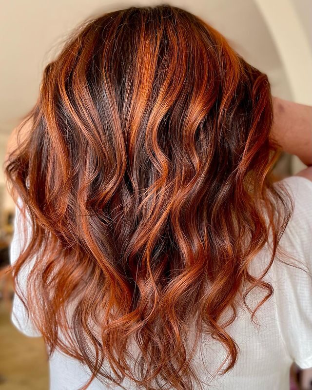 Оттенки тыквенных специй придадут вашим волосам уютную осеннюю атмосферу благодаря сочетанию теплых оранжевых, медных и золотистых тонов. Эти блики добавляют глубину и яркость, создавая богатый, многомерный вид, который кажется ярким, но естественным. Идеально подходит для брюнеток или рыжеволосых, желающих согреть свой цвет, блики тыквенных специй придадут вашим волосам сияющий сезонный оттенок. Это смелый, но практичный стиль, полный тепла и индивидуальности.