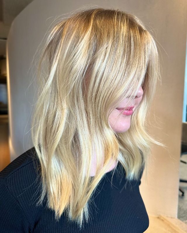 Блонд-балаяж с бликами, обрамляющими лицо, придаст вашему образу свежесть и загар. Балаяж дает мягкое, естественное сочетание темных корней и теплых светлых кончиков, создавая глубину и объем, которые кажутся легкими. Более светлые пряди вокруг лица сделают ваши черты ярче, мгновенно добавив сияния и немного драматизма. Это современный стиль, не требующий особого ухода, который прекрасно растет, сохраняя безупречный вид без постоянного ухода. Идеально, если вам нужно сияние «только что с пляжа» круглый год.