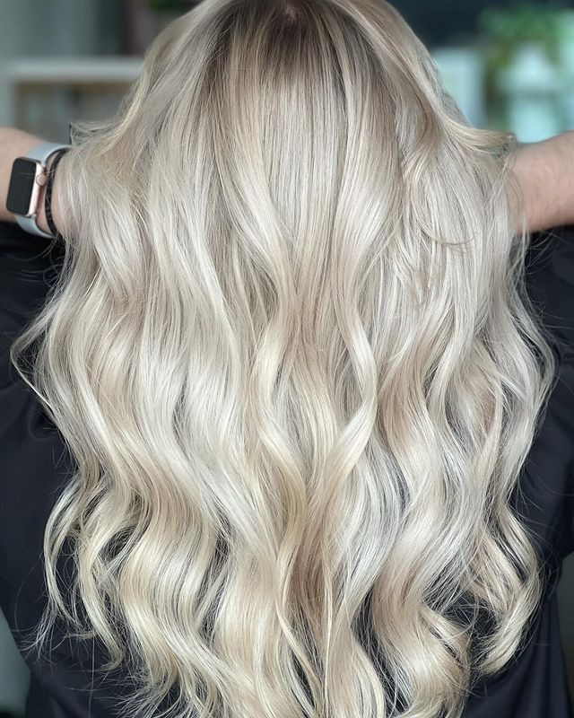 Soft waves with platinum balayage will give your hair a natural, sun-kissed glow. Platinum highlights are softly blended to add vibrancy and depth while keeping the overall look soft and casual. The waves add dimension, creating a relaxed, beachy, sophisticated and low-maintenance feel. Ideal for those who prefer a bright, casual style.