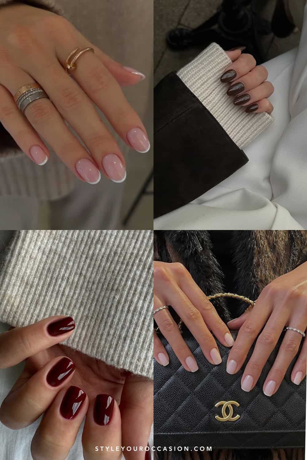 Old money nails are perfect for fall and winter, so add a luxe finish to your cold weather outfits with one of the beautiful, low-key luxe looks above!