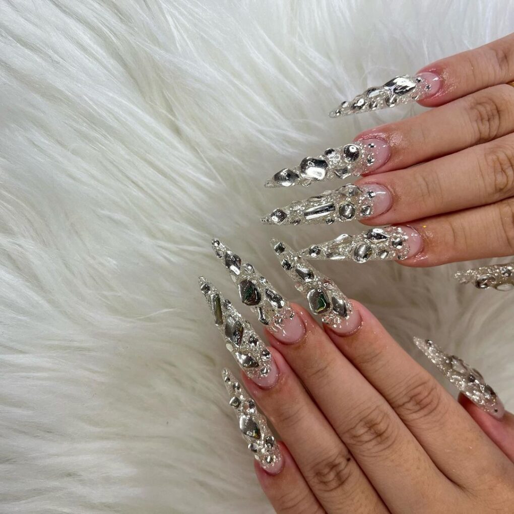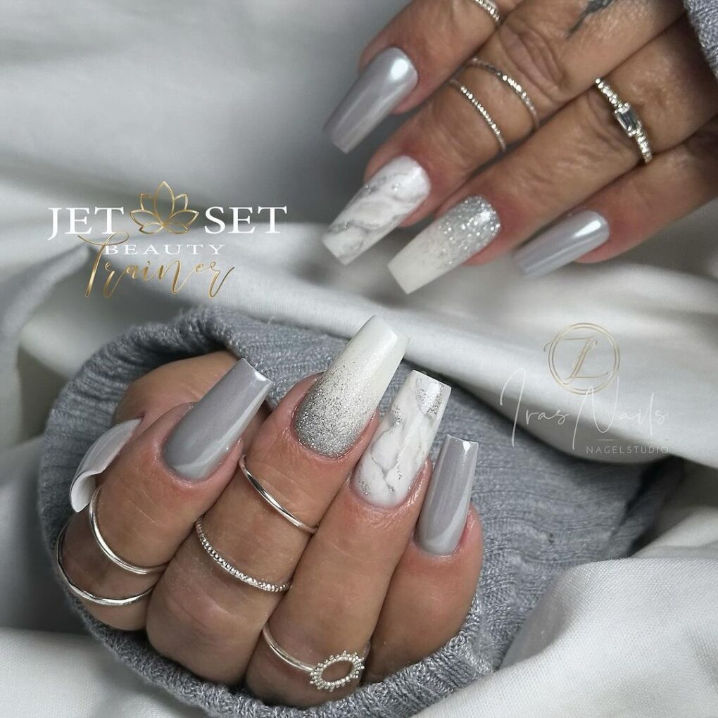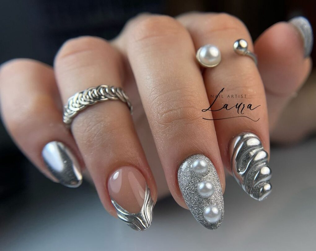 Get ready to upgrade your winter game with the mesmerizing temptation of silver nail designs. From icy gradients to dazzling embellishments, these nail art ideas will add undeniable glamor to your seasonal look, ensuring you’ll stand out in shimmering frost wherever you go.