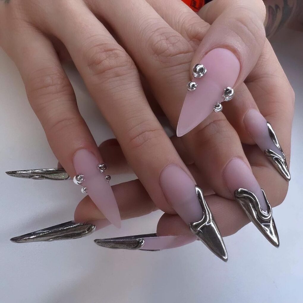 Silver Matte Glam combines the sophistication of silver with the understated sophistication of a matte finish, creating a chic and versatile look for the winter season. This nail trend exudes a sophisticated yet glamorous charm, adding a touch of sophistication to your fingertips.