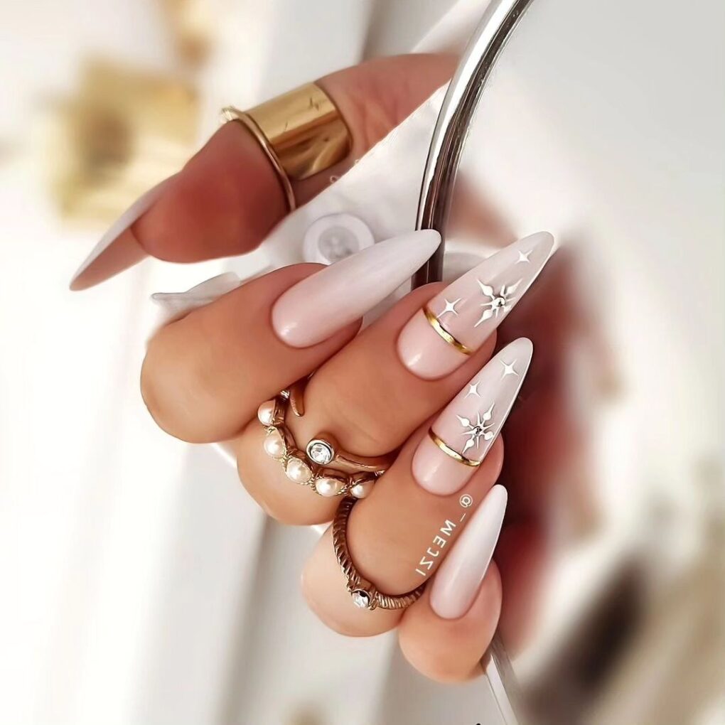 Get ready to turn heads with New Year’s Glam nails designed to make a statement as you ring in the new year with unparalleled style and sophistication. Let your nails shine and sparkle as you celebrate with maximum glamor and flair.