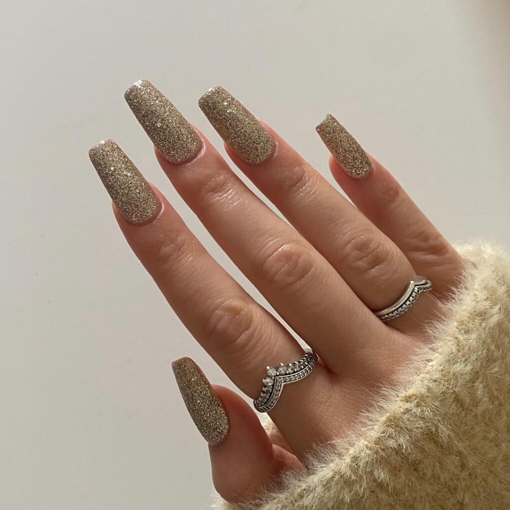 Gold Glamor nails set the stage for a dazzling start to the new year, promising to highlight your style with luxurious sparkle and timeless elegance.