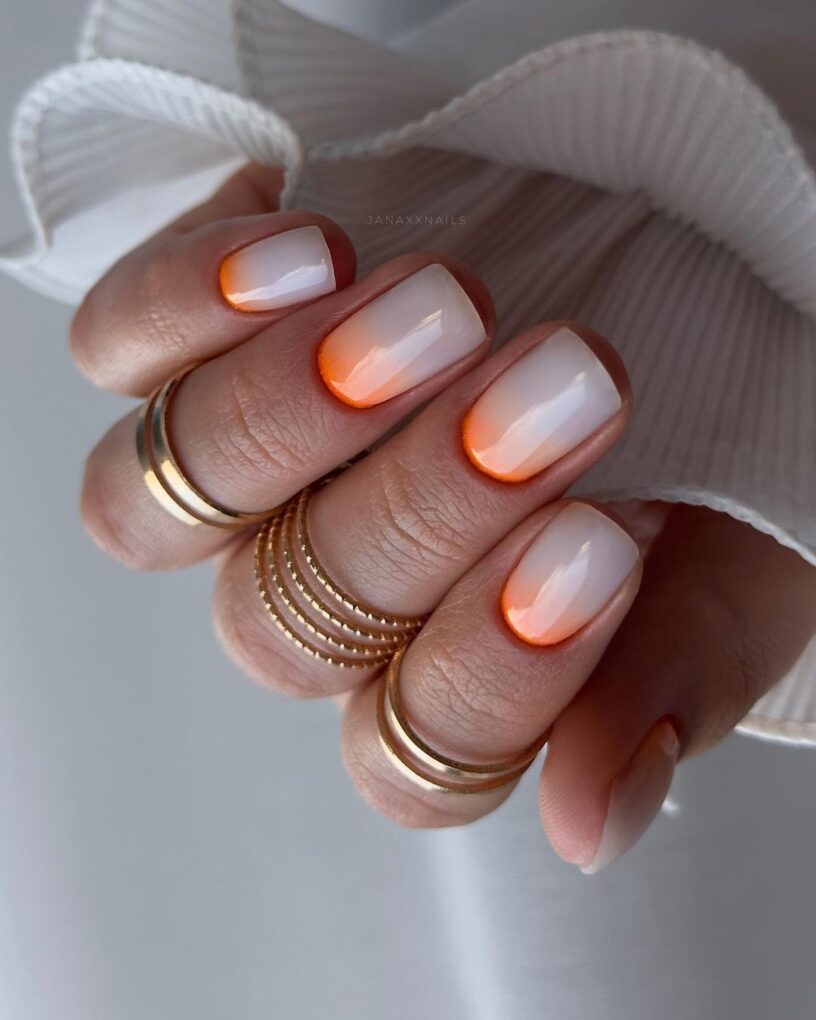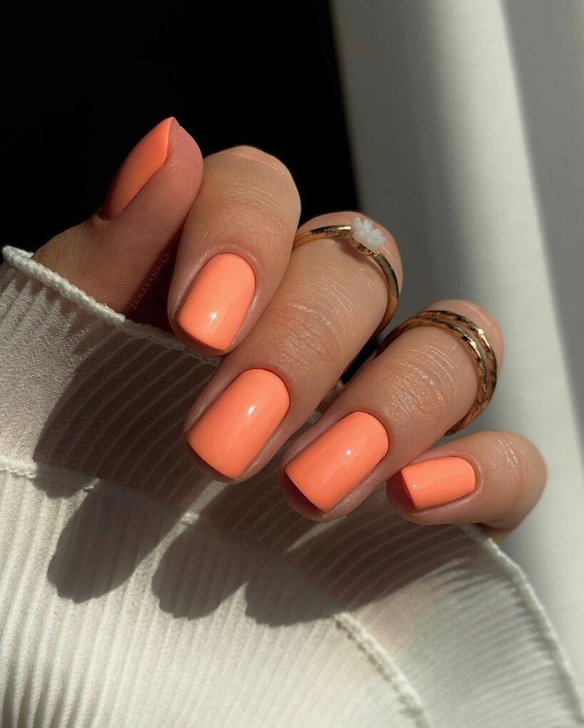 In the fiery glow of orange, your shellac nails are a vibrant expression of warmth, making the world glow with color.