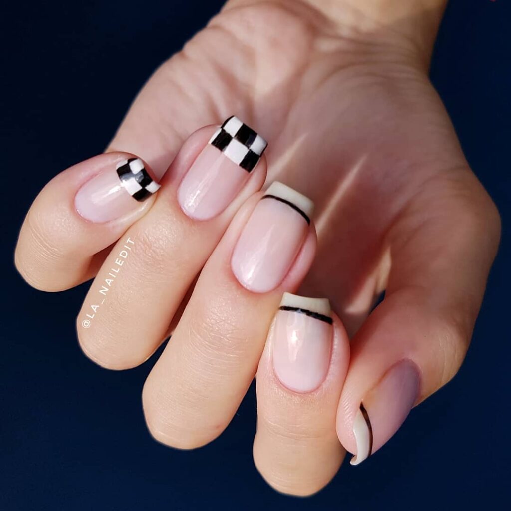 Achieve the perfect balance between classic and modern with mid-length French check nails, where each check becomes an expression of timeless sophistication.