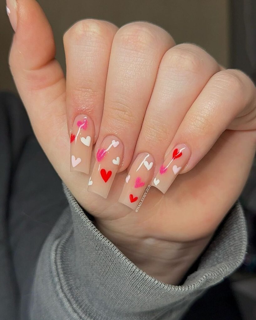 Wear your heart on your fingertips with medium length acrylic nails, where each nail becomes a canvas on which love and style intertwine.