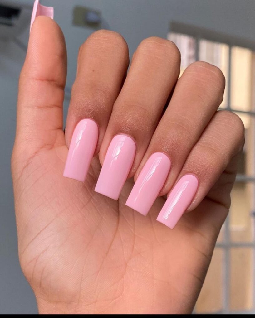 Let your nails shine with beauty: soft pink nails of medium length will give your fingertips a delicate and graceful look.