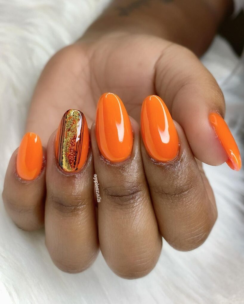 Express your zest for life with medium-length orange nails, where each vibrant shade transforms your manicure into a celebration of energy and style.
