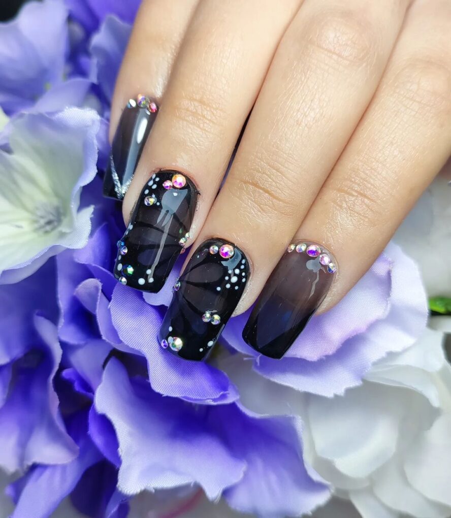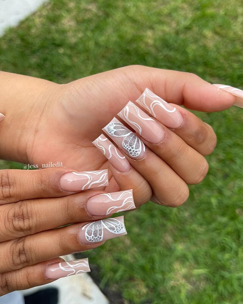Feel the elegance with medium-length nails adorned with a delicate ombre butterfly, transforming each fingertip into a delicate and enchanting masterpiece.