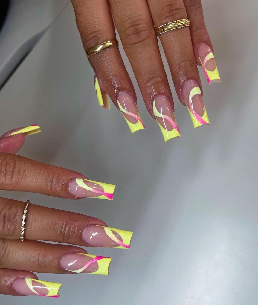 Give your medium-length nails a bold look with neon French nails. These dynamic and eye-catching shades demonstrate the versatility of this canvas for modern and vibrant expressions.
