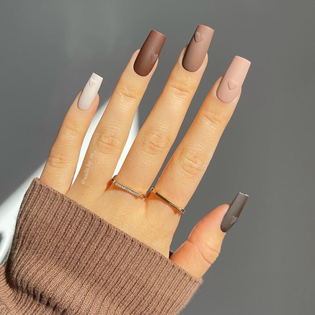 Achieve the perfect balance of sophistication with medium-length glossy and matte nails, where each fingertip becomes a chic canvas, showcasing the harmonious interplay of glossy appeal and sophisticated matte elegance.