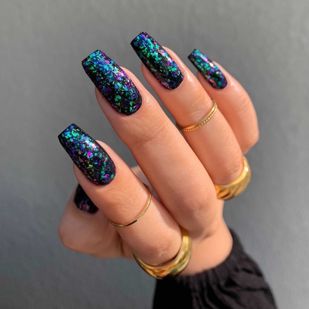 Create an air of mystery and enchantment with dark and mystical mid-length nails, turning each fingertip into a captivating canvas of depth and sophistication.