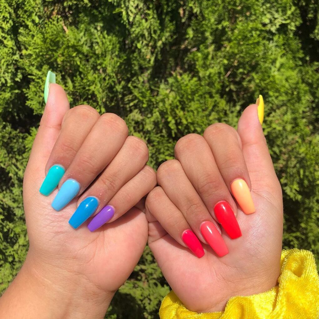 Color your days with shades of joy – medium length rainbow nails where each color tells a story of bright positivity.