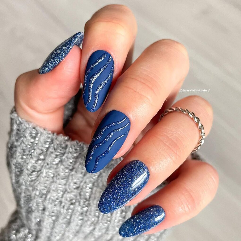 11. Blue glitter nails