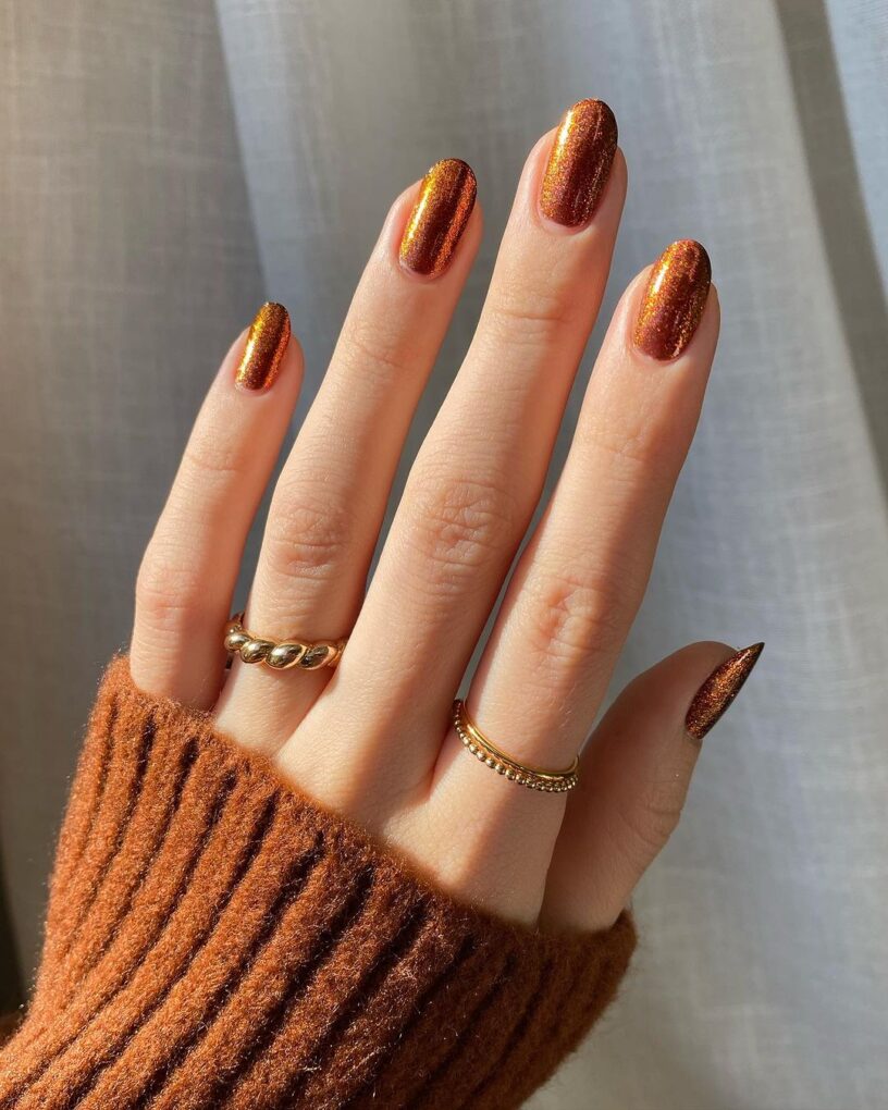 Stay warm in style with “Toasty Warm” as this November nail design envelops your fingertips in rich, warm tones reminiscent of a crackling fireplace, creating a cozy and stylish touch for the season.